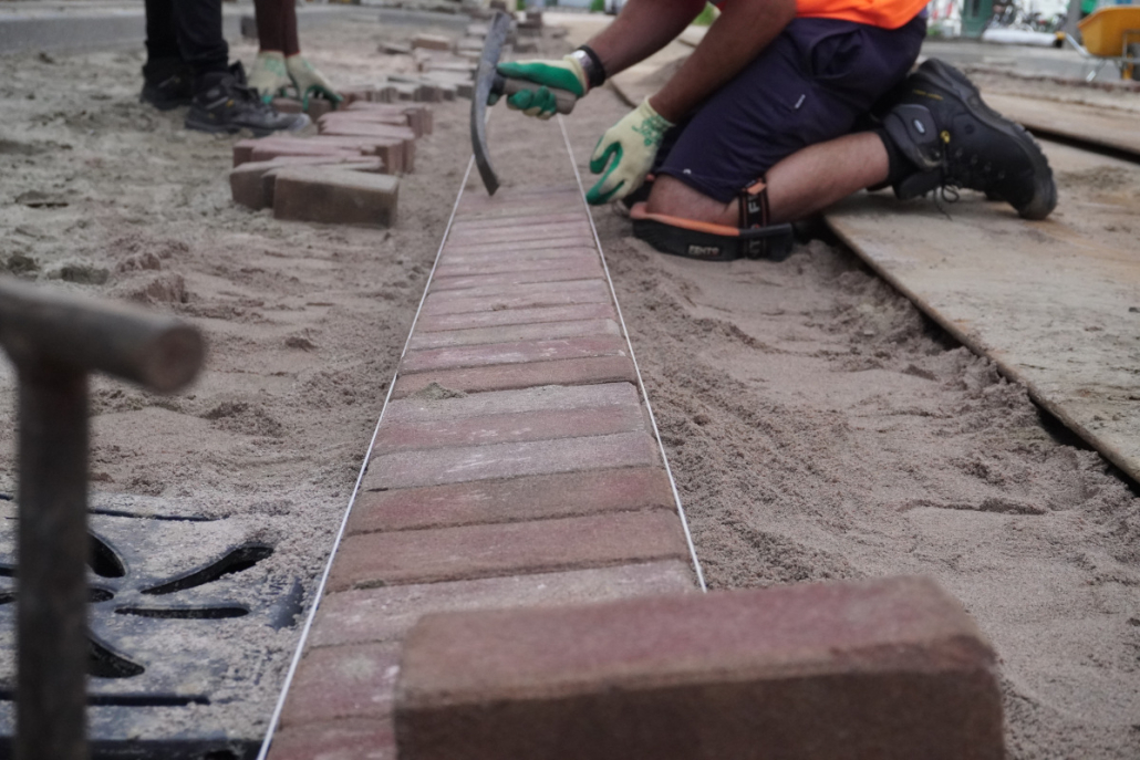 Onder leiding van onze meewerkend uitvoerder heeft een sterk team — bestaande uit machinist, stratenmakers en leerlingen van onze bedrijfsschool — dit project succesvol opgeleverd.